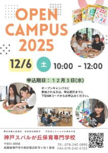 このたび、神戸スバルが丘保育専門学校 のオープンキャンパスを下記の日程で開催いたします。
